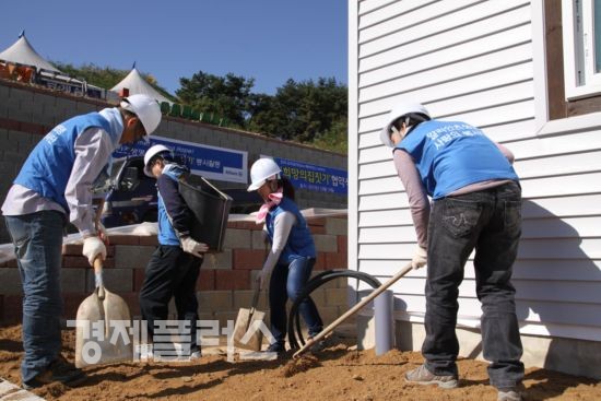 이날 봉사활동에 참여한 임직원 30여 명은 건축 마무리 작업이 한창인 천안 현장에서 건축자재 나르기, 수도관 설치 등을 하면서 일손을 보탰다.
