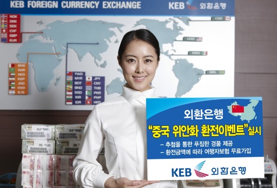이벤트기간 중 중국 위안화를 2천위안 이상 환전하는 개인고객에게 아이패드, 백화점상품권, CJ외식상품권, USB 등을 추첨을 통해 증정한다. 환전금액에 따라 여행자보험도 무료로 가입해준다.