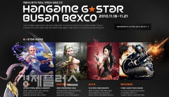 한게임은 오늘 특별 페이지를 오픈해 차세대 MMORPG ‘테라’, 온라인 액션 전략 게임 ‘킹덤언더파이어2’, 온라인 FPS ‘메트로 컨플릭트 : 프레스토’, 아시아 판타지 MMORPG ‘아스타’ 등 참가작에 대한 내용을 게시한다.
