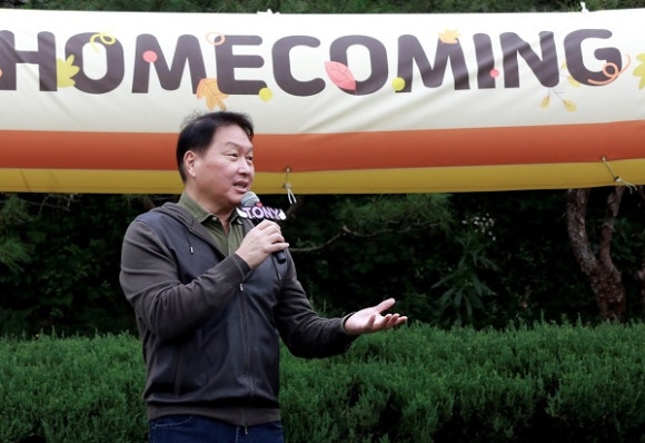 SK그룹은 최태원 SK 회장이 지난 3일 경기도 이천 SK텔레콤 인재개발원에서 진행된 한국고등교육재단의 홈커밍데이에서 장학생 동문과 그 가족들 300여명을 만났다고 4일 밝혔다. 현재, 최 회장은 한국고등교육재단 이사장을 맡고 있다.
