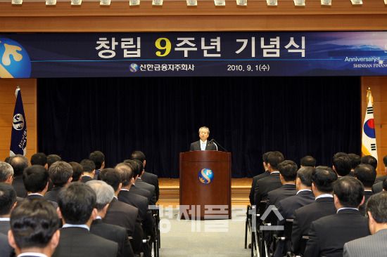 신 사장은 1일 오전 08:40분부터 서울 중구 태평로에 위치한 신한은행 20층 대강당에서 진행된 신한금융지주 창립9주년 기념식에서 이같이 말하고 신한금융그룹이 글로벌 금융위기를 극복해 내면서 수익성 및 자산건전성 기준으로 인정 받았지만 단지 경쟁사들보다 타격을 덜 입었다는 것만으로 위안을 받고 우월감을 느낄 수 있는 입장인가에 대해서는 성찰이 필요하다고 지적했다.