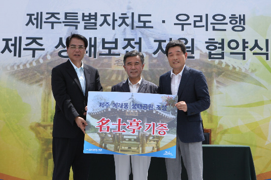 우리은행은 이날 협약에서 세계자연유산으로 지정된 제주특별자치도의 생태보전을 지원하기 위해 제주특별자치도의 대표적인 생태마을인 예래생태마을에 정자 및 묘목 기증하고 생태환경 보전을 위해 필요한 다양한 금융서비스의 제공을 약속했다.
