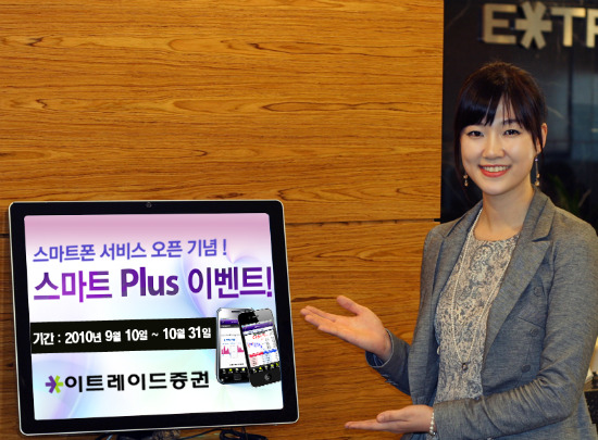 더불어, 기종에 따라 가입비, 유심비, 5만원 상당의 악세서리 등의 상품을 지원할 예정이다. 스마트폰을 이미 보유한 고객을 위해 이트레이드증권 모바일시스템을 다운받아 거래하면 연말까지 무료수수료 및 2년간 온라인수수료율(0.015%)을 적용 받을 수 있는 보너스 이벤트가 함께 진행된다.