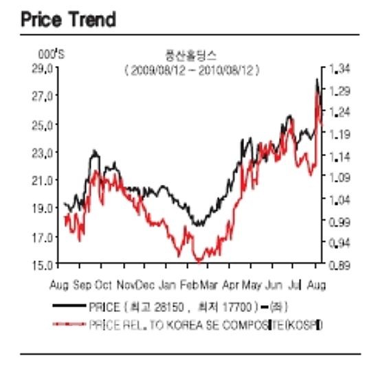 이상헌 하이투자증권 연구원은 "풍산홀딩스는 올해 상반기 멀티 게이지 매출 증가로 수익성 개선세가 뚜렷하게 나타났다"며 "하반기에도 신규사업 매출 가세 및 기존사업 수익성 개선세 지속으로 전년대비 이익 증가폭이 클 것"이라고 전망했다.
